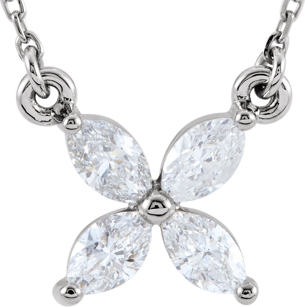 85941 / 14K White / Necklace / 16 In / 1/2 Ctw Diamond Marquise Cluster Necklace