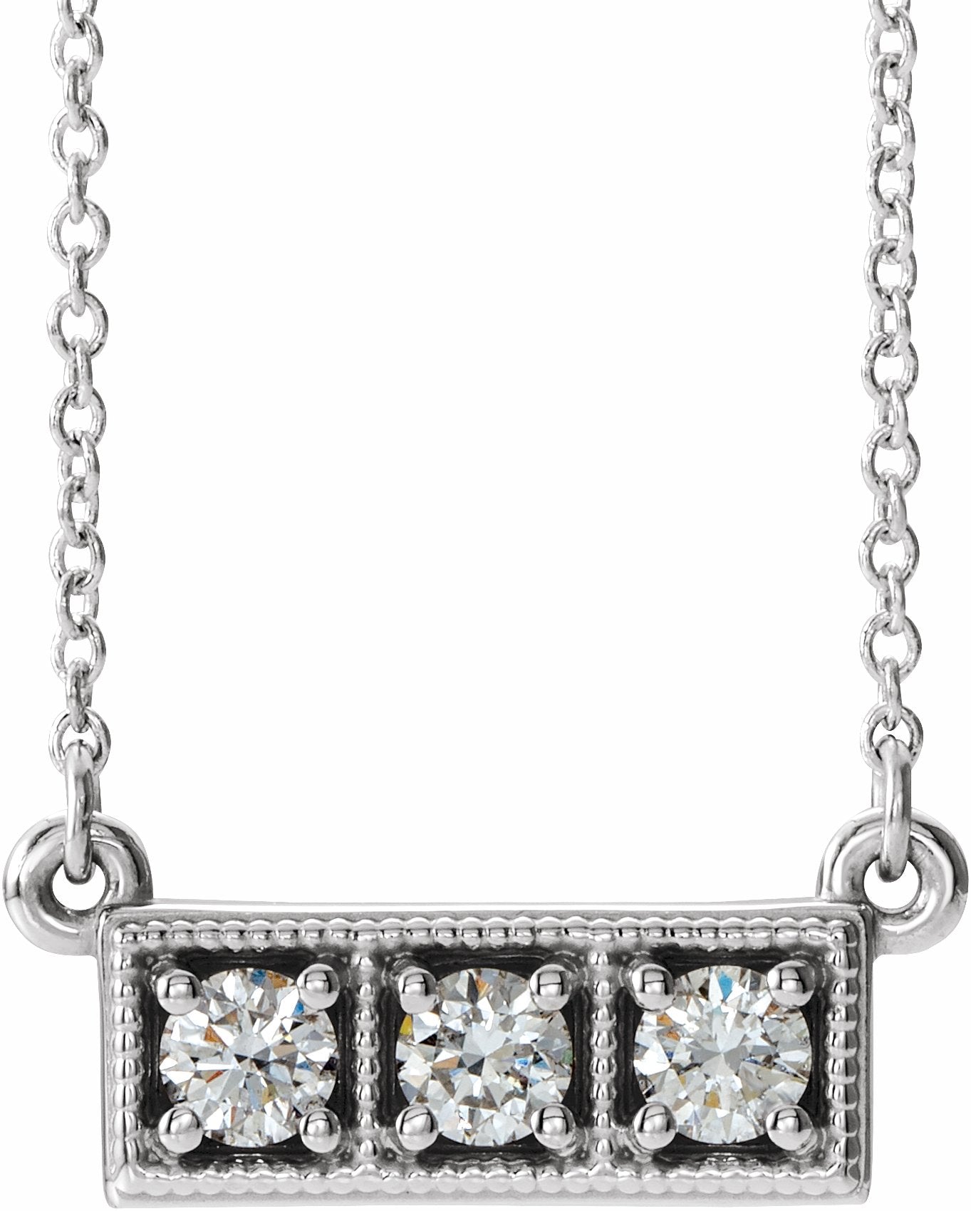 14K White 1/3 CTW Diamond Three-Stone Granulated Bar 16-18 Necklace - 8661260010P