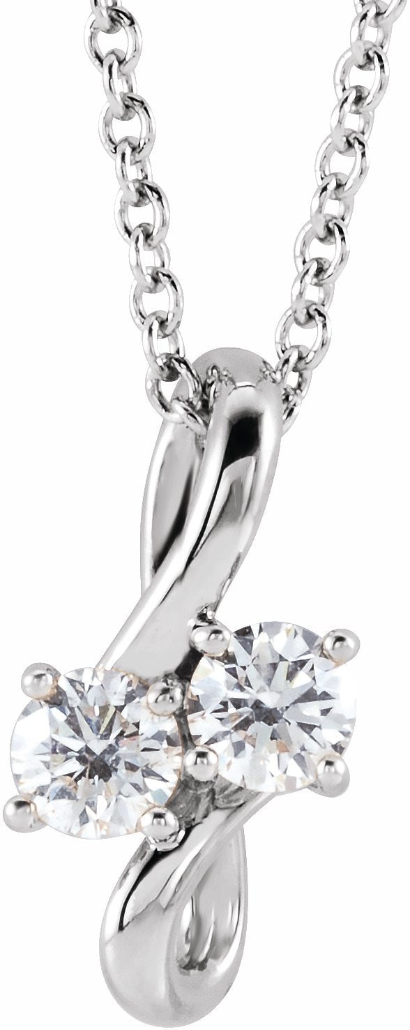 14K White 1/5 CTW Diamond Two-Stone Bypass 16-18 Necklace - 86748605P
