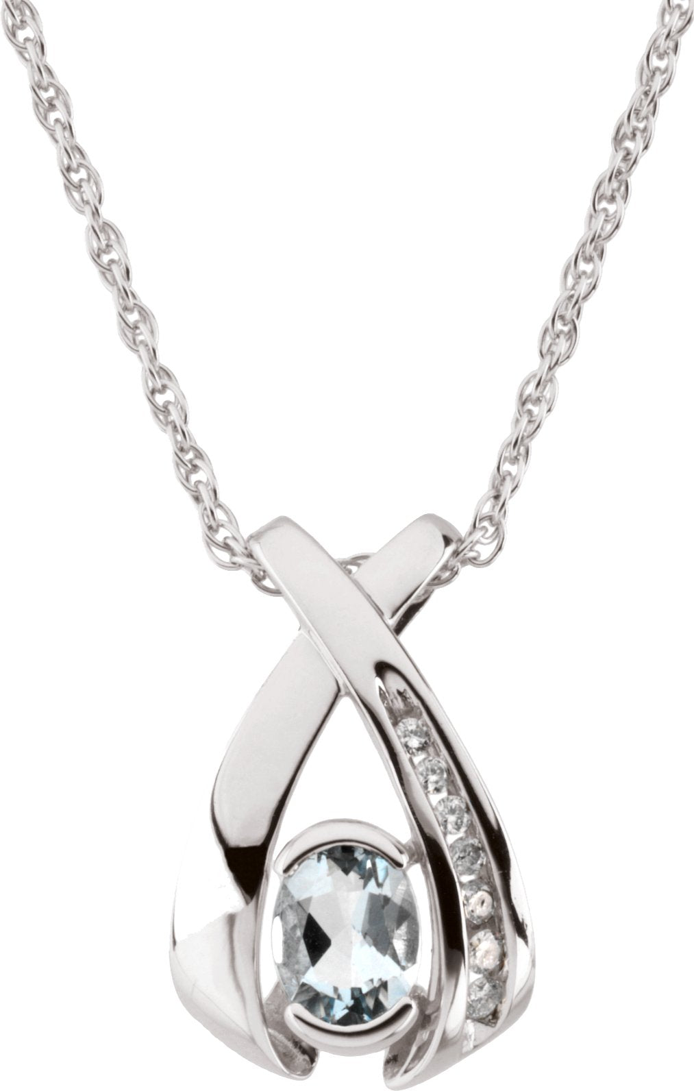 14K White 7x5 mm Oval Aquamarine & .08 CTW Diamond 18 Necklace - 6904564911P