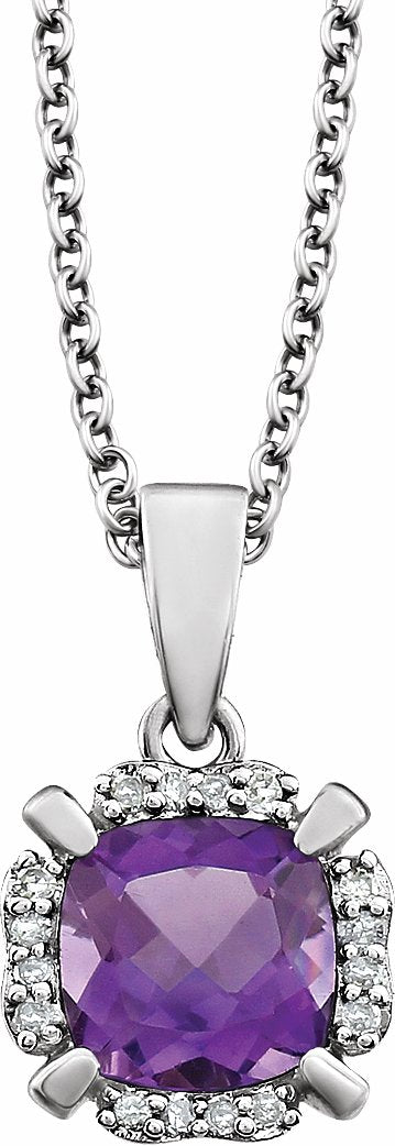 14K White Amethyst & .05 CTW Diamond 18 Necklace - 65195360002P