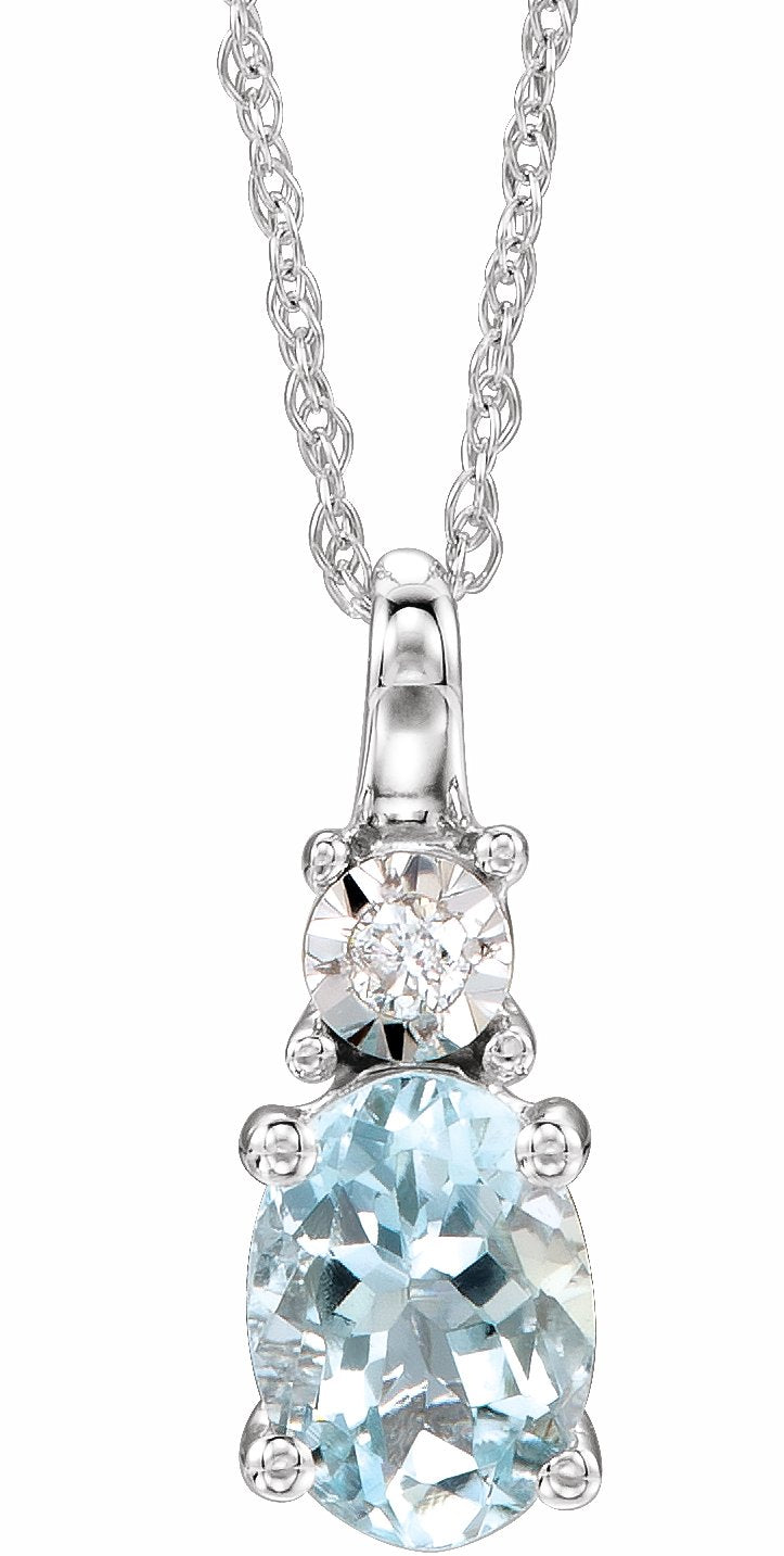 651534 / 14K White / Aquamarine / Genuine Aquamarine And .02 Ctw Diamond Necklace