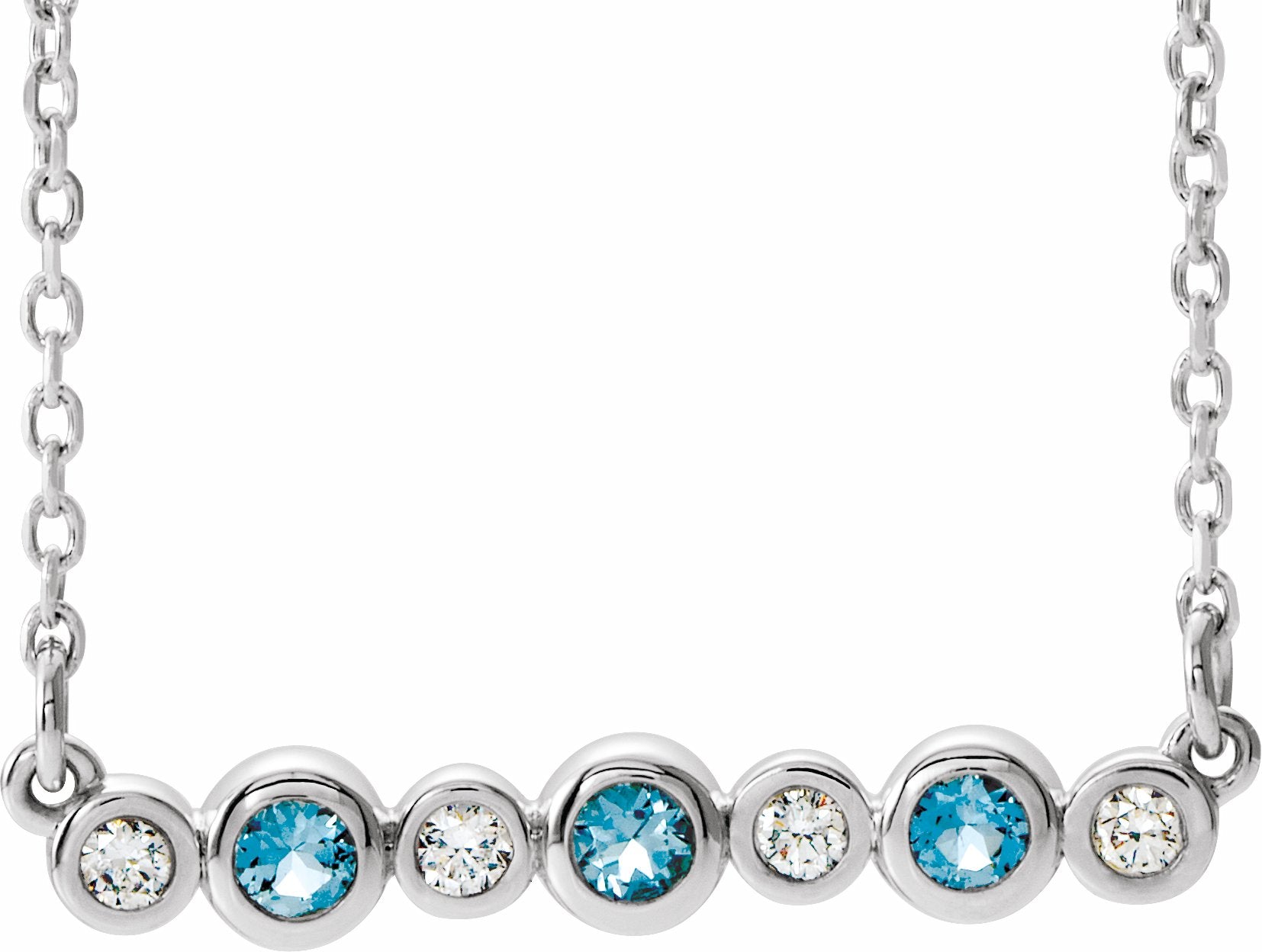14K White Aquamarine & .08 CTW Diamond Bezel-Set Bar 16-18 Necklace - 86706621P