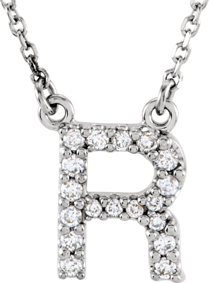 14K White Initial R 1/8 CTW Diamond 16 Necklace - 67311117P