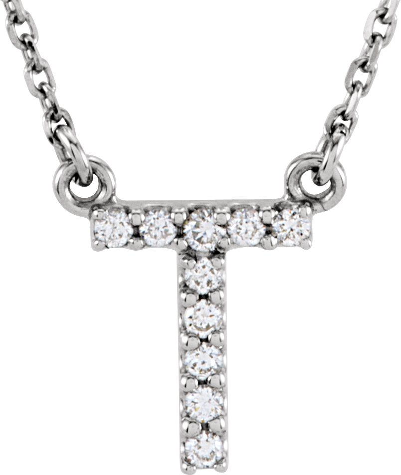 14K White Initial T .08 CTW Diamond 16 Necklace - 67311119P