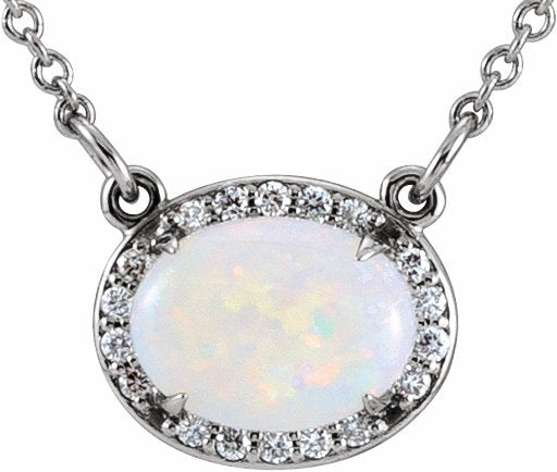 14K White Opal & .07 CTW Diamond Halo-Style 16 1/2 Necklace - 85902105P