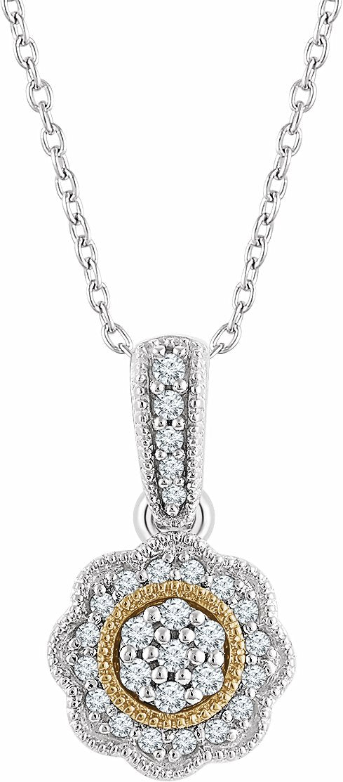 14K White & Yellow 1/6 CTW Diamond Halo-Style 16-18 Necklace - 65265760000P