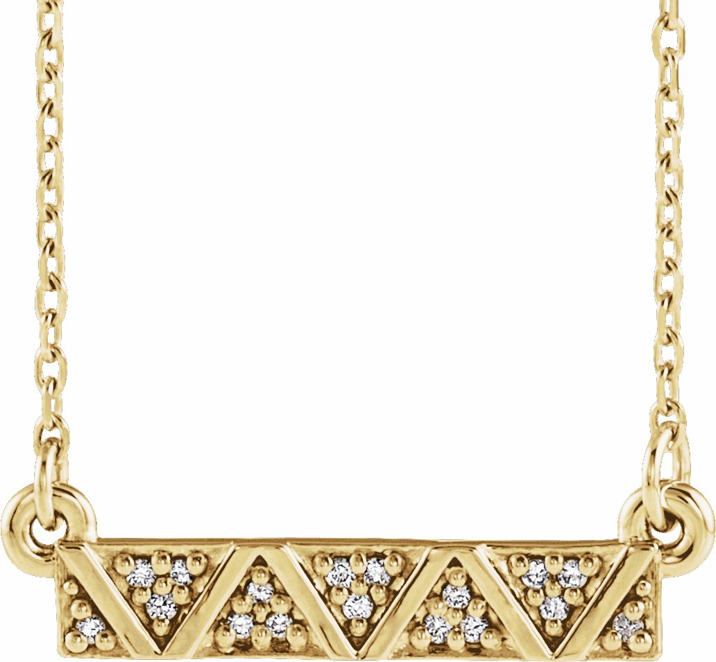 86714 / Necklace / Set / 14K Yellow / Polished / .05 Ctw Diamond Geometric Bar 16-18 Inch Necklace
