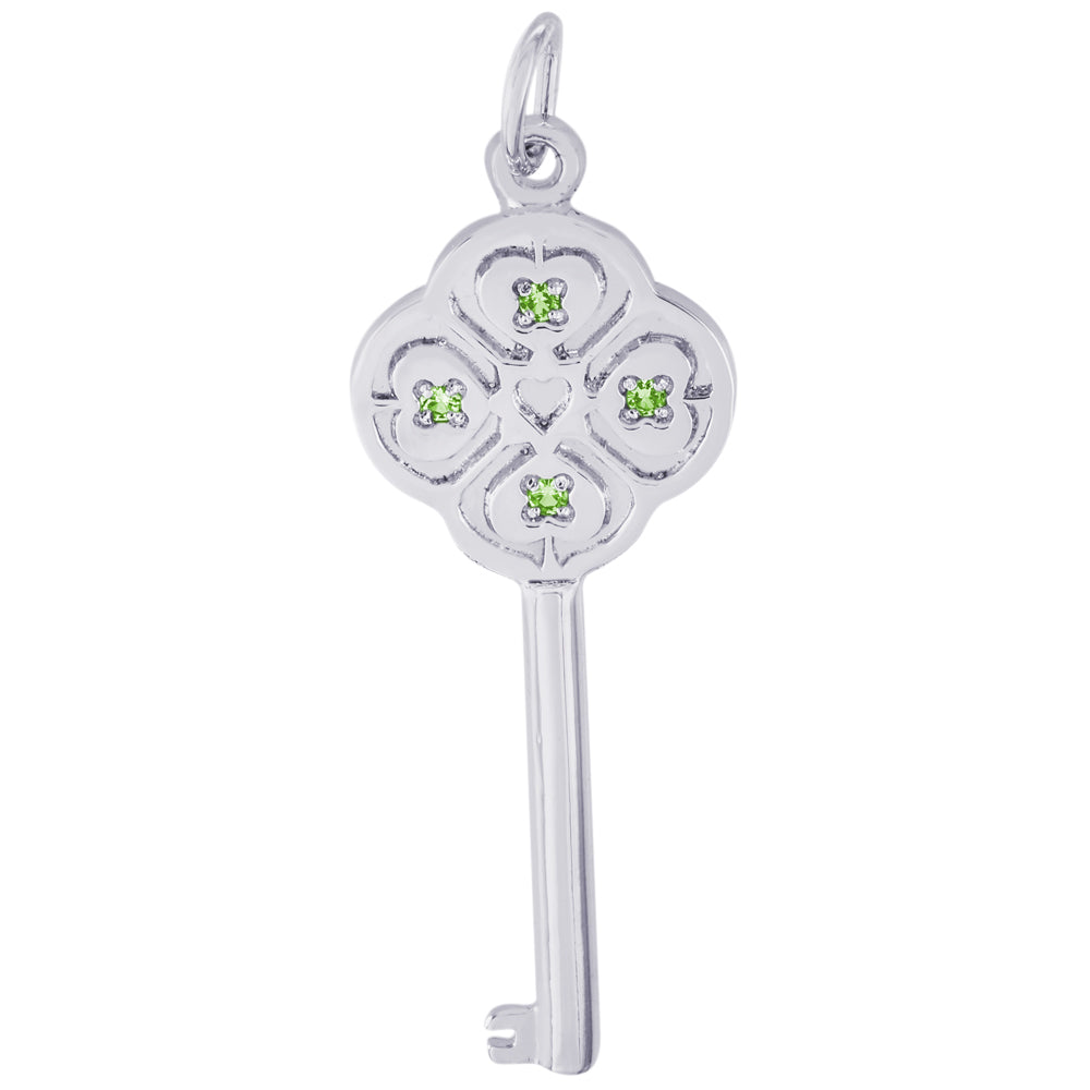 Sterling Silver Key Lg 4 Heart Aug Charm