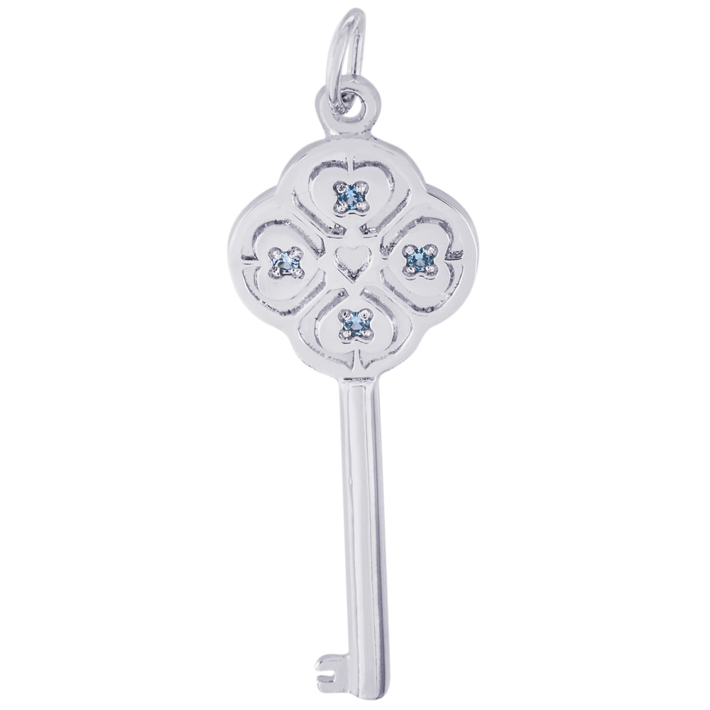 Sterling Silver Key Lg 4 Heart Dec Charm