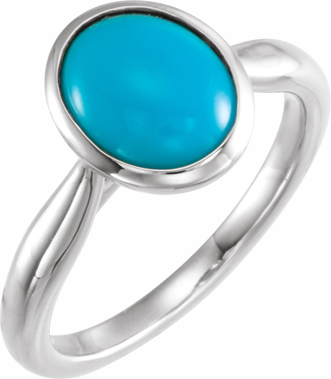 72024 / Set / 14K White / Turquoise / Oval / 10 X 8 Mm / Polished / Genuine Cabochon Turquoise Ring
