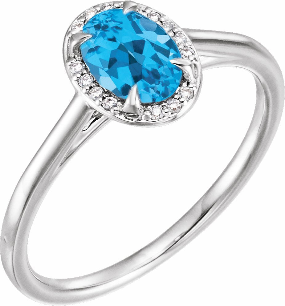 14K White 7x5 mm Oval Swiss Blue Topaz & .04 CTW Diamond Ring - 71634144P