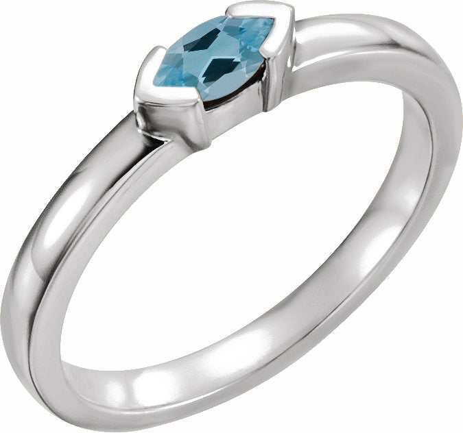 14K White Aquamarine Marquise Stackable Family Ring - 713546008P