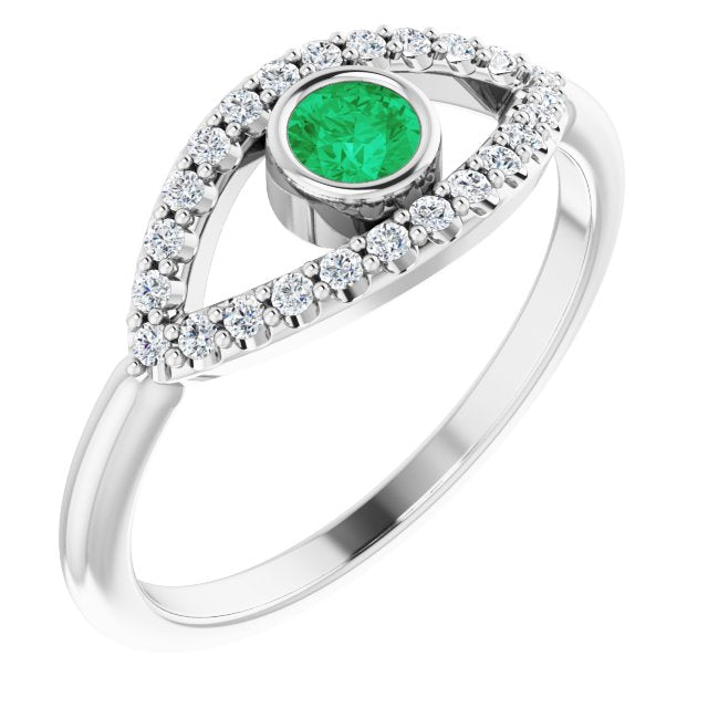 72064 / Set / 14K White / Emerald / Round / 3.5 Mm / Polished / Genuine Emerald And White Sapphire Evil Eye Ring