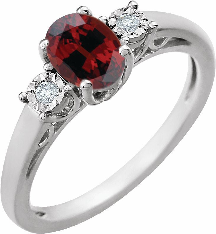 14K White Mozambique Garnet and .04CTW Diamond Ring - 651544107P