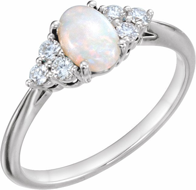 71812 / Set / 14K White / Opal / 7 X 5 Mm / Polished / Genuine Opal And 1/5 Ctw Diamond Ring