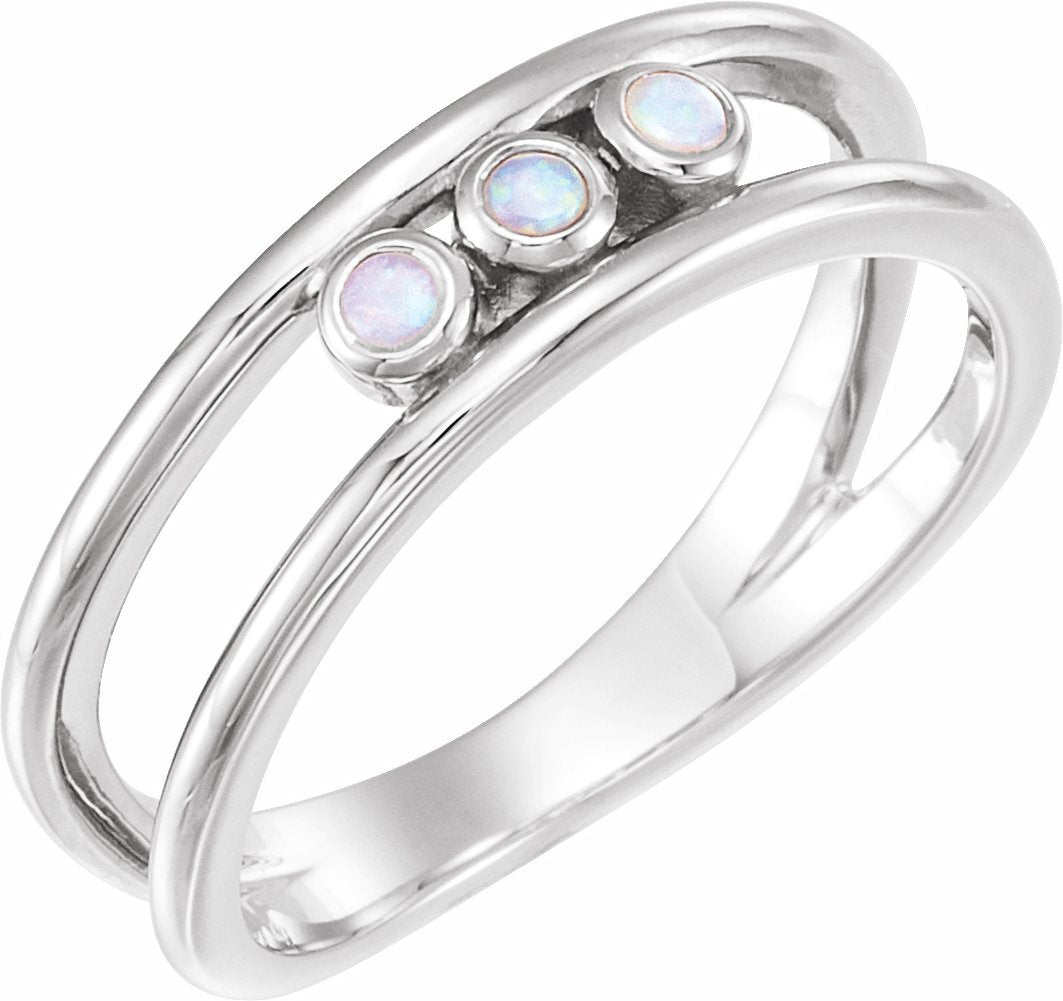 71967 / Set / 14K White / White Opal / Polished / Genuine Opal Three Stone Ring