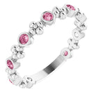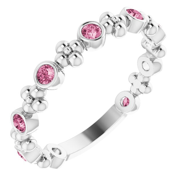 71923 / Set / 14K White / Pink Tourmaline / Polished / Genuine Pink Tourmaline Beaded Ring