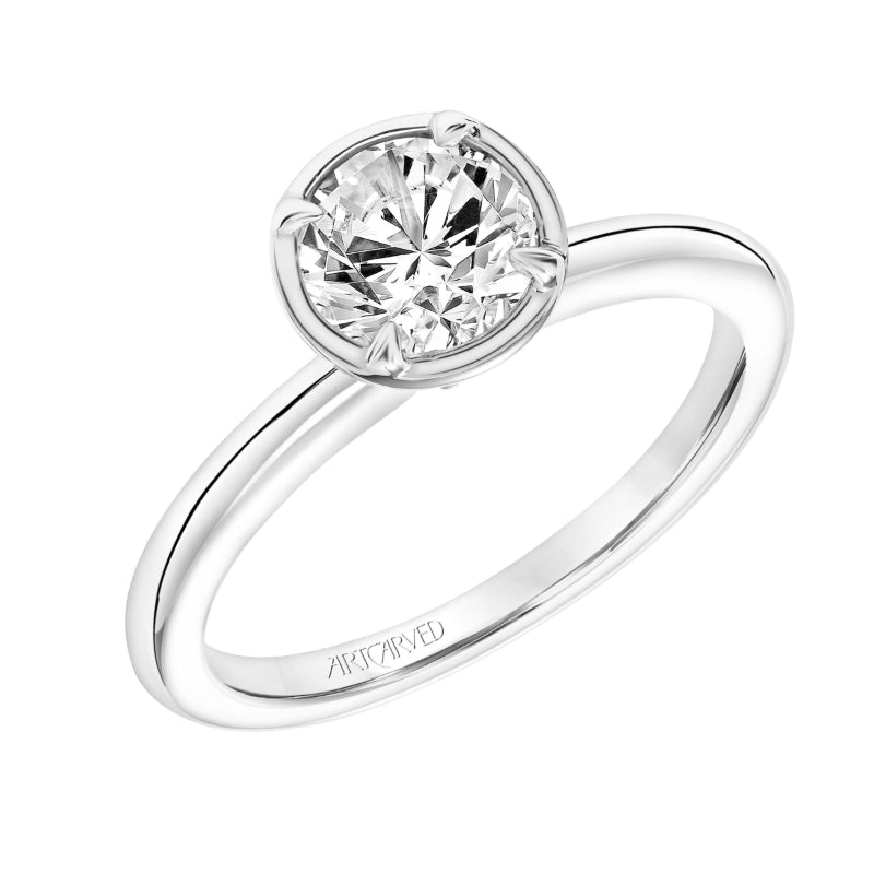 Artcarved Bridal Mounted with CZ Center Contemporary Bezel Engagement Ring Lake 14K White Gold - 31-V837ERW-E.00