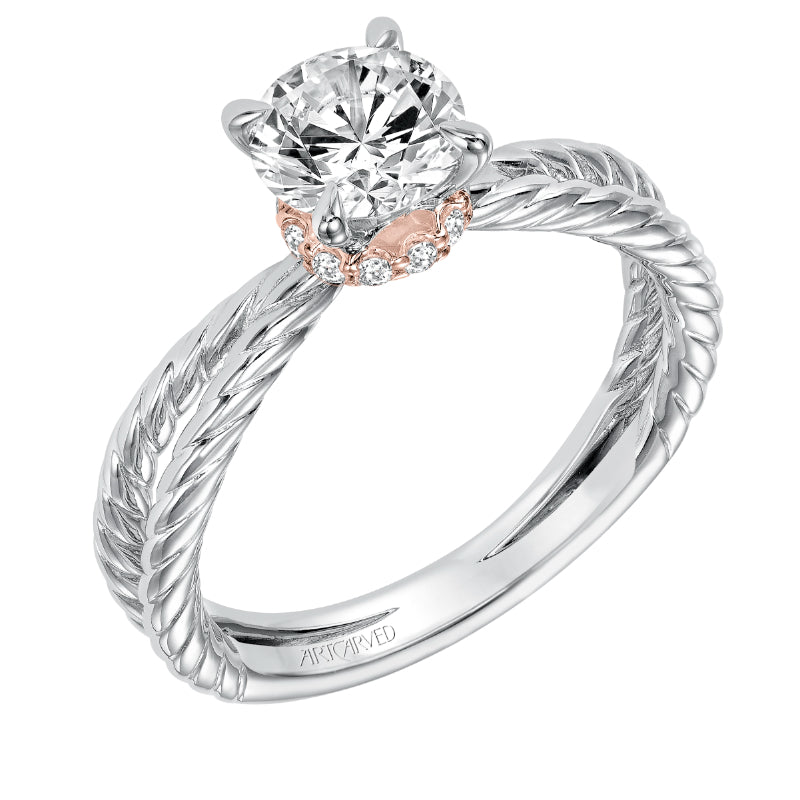 Artcarved Bridal Mounted with CZ Center Contemporary Twist Solitaire Engagement Ring Caitlin 14K White Gold Primary & 14K Rose Gold - 31-V569ERR-E.00