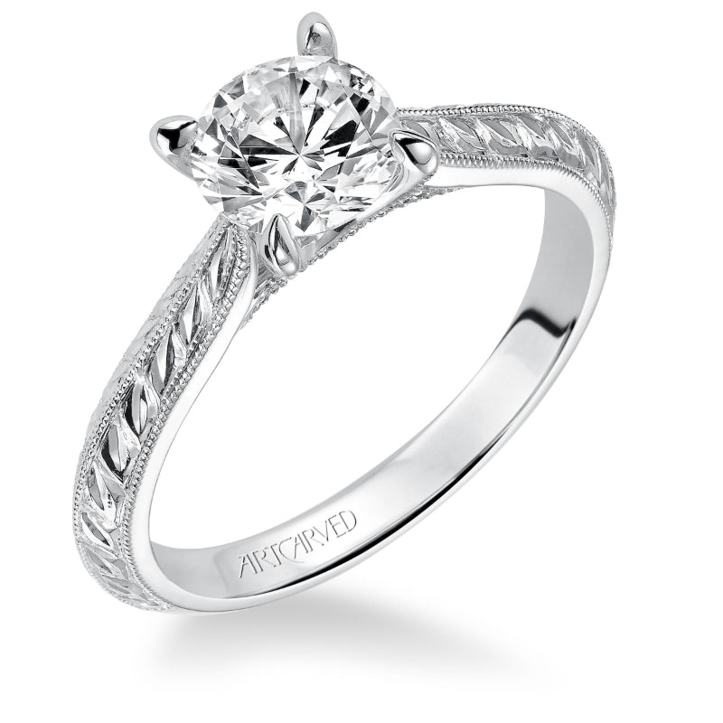 Artcarved Bridal Mounted with CZ Center Vintage Engraved Solitaire Engagement Ring Cherry 14K White Gold - 31-V517ERW-E.00