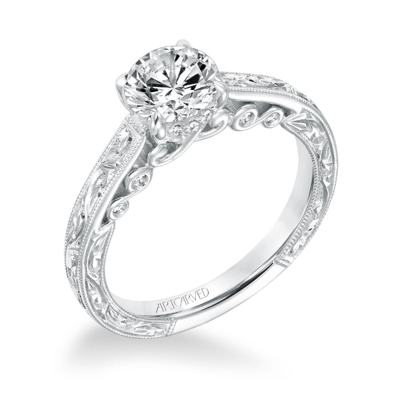 Artcarved Bridal Mounted with CZ Center Vintage Filigree Diamond Engagement Ring Amal 14K White Gold - 31-V692ERW-E.00