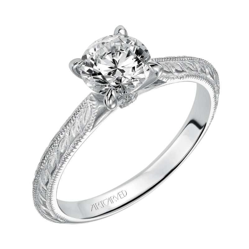 Artcarved Bridal Semi-Mounted with Side Stones Vintage Engraved Solitaire Engagement Ring Imani 14K White Gold - 31-V498ERW-E.01