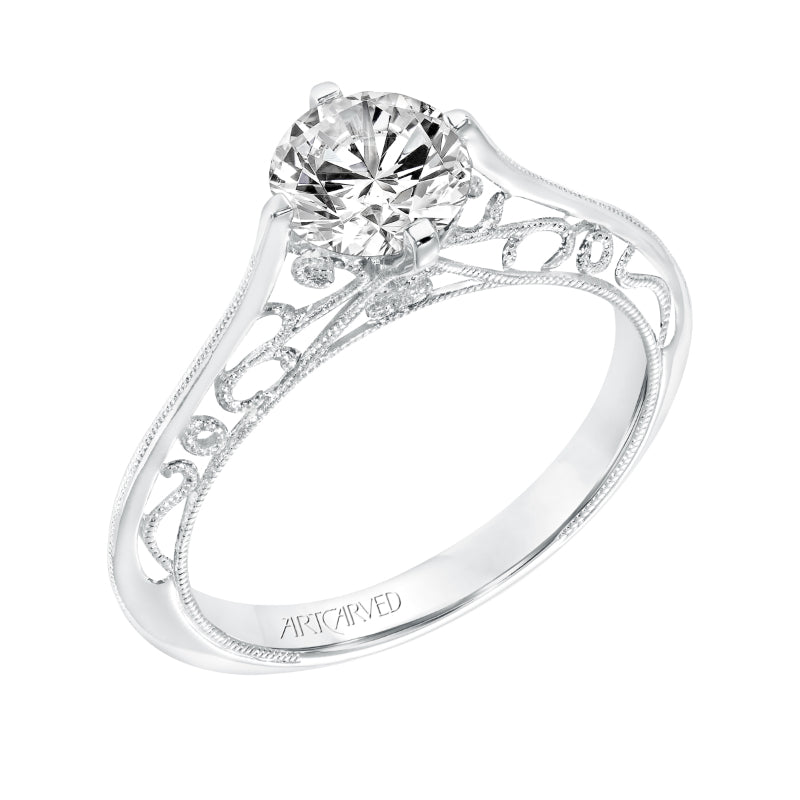 Artcarved Bridal Unmounted No Stones Vintage Filigree Solitaire Engagement Ring Laurette 14K White Gold - 31-V726ERW-E.01
