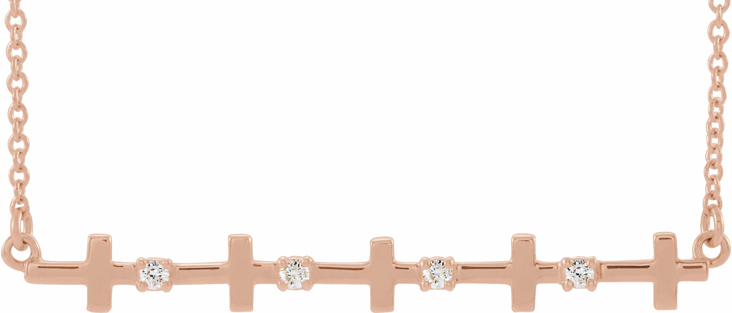 R45400 / Necklace / Set / 14K Rose / Polished / .05 Ctw Diamond Sideways Cross Bar Necklace