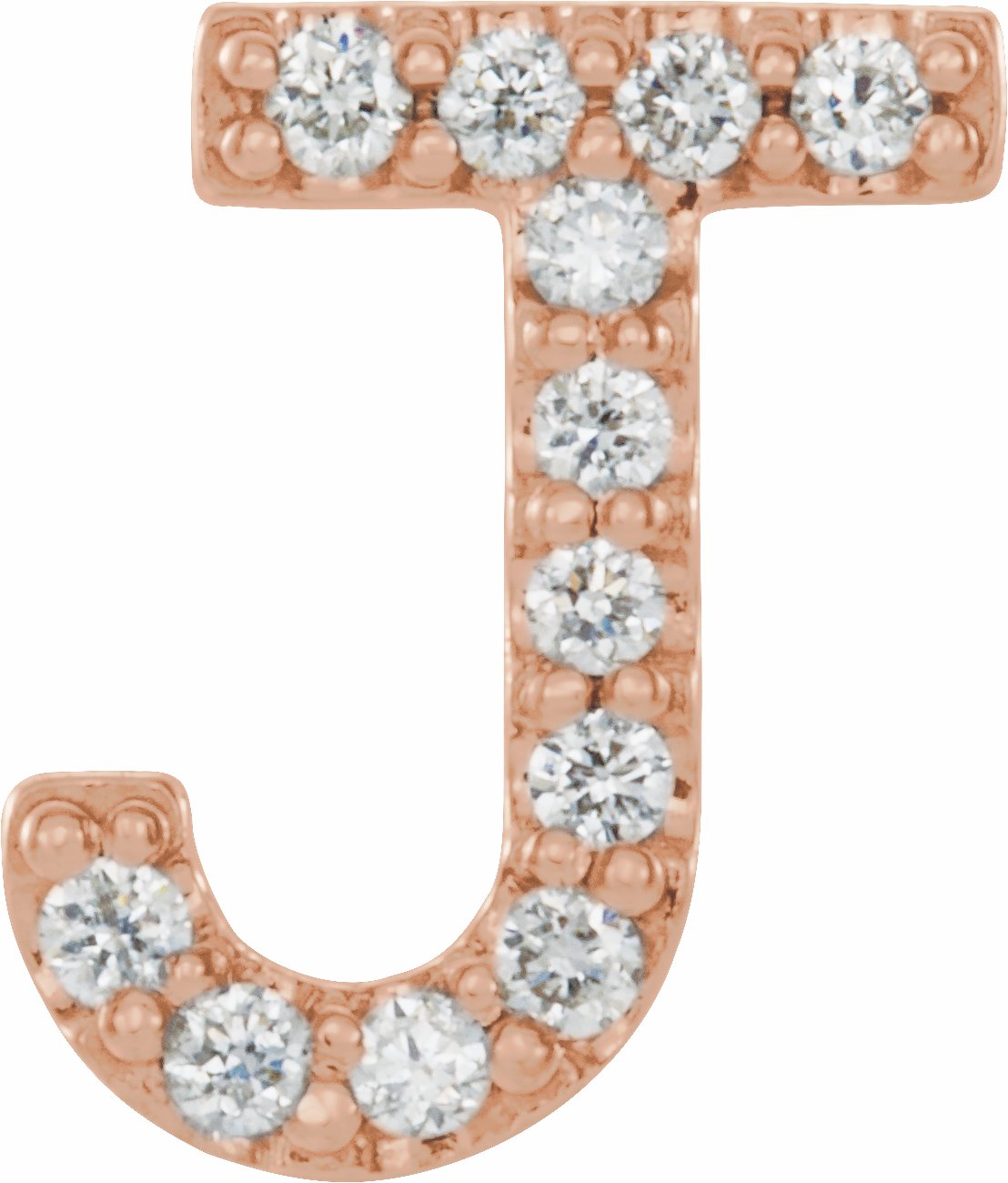 86797 / Set / 14K Rose / J / Each / Polished / .05 Ctw Diamond Initial Earring W/Back