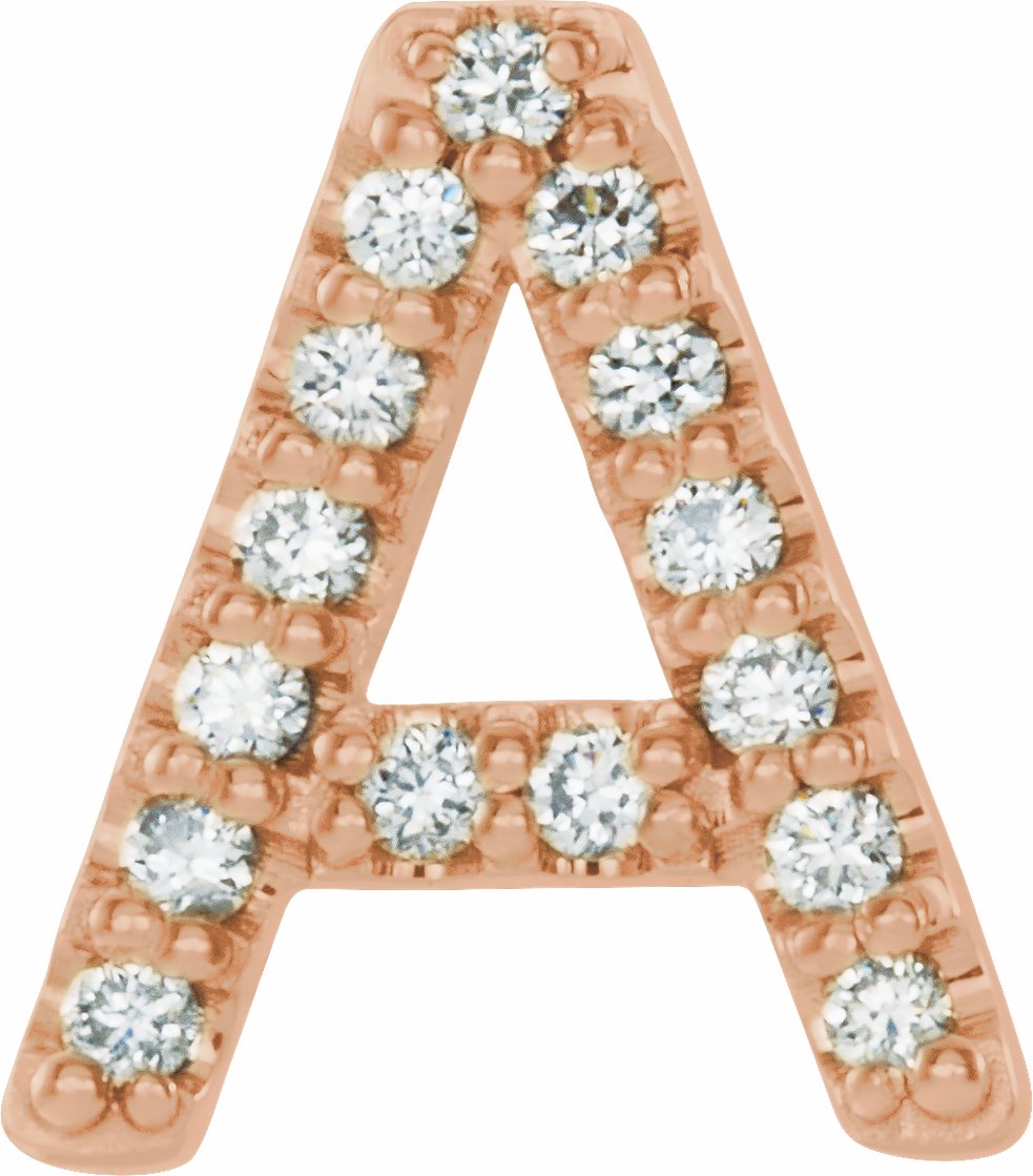 86797 / Set / 14K Rose / A / Each / Polished / .06 Ctw Diamond Initial Earring W/Back