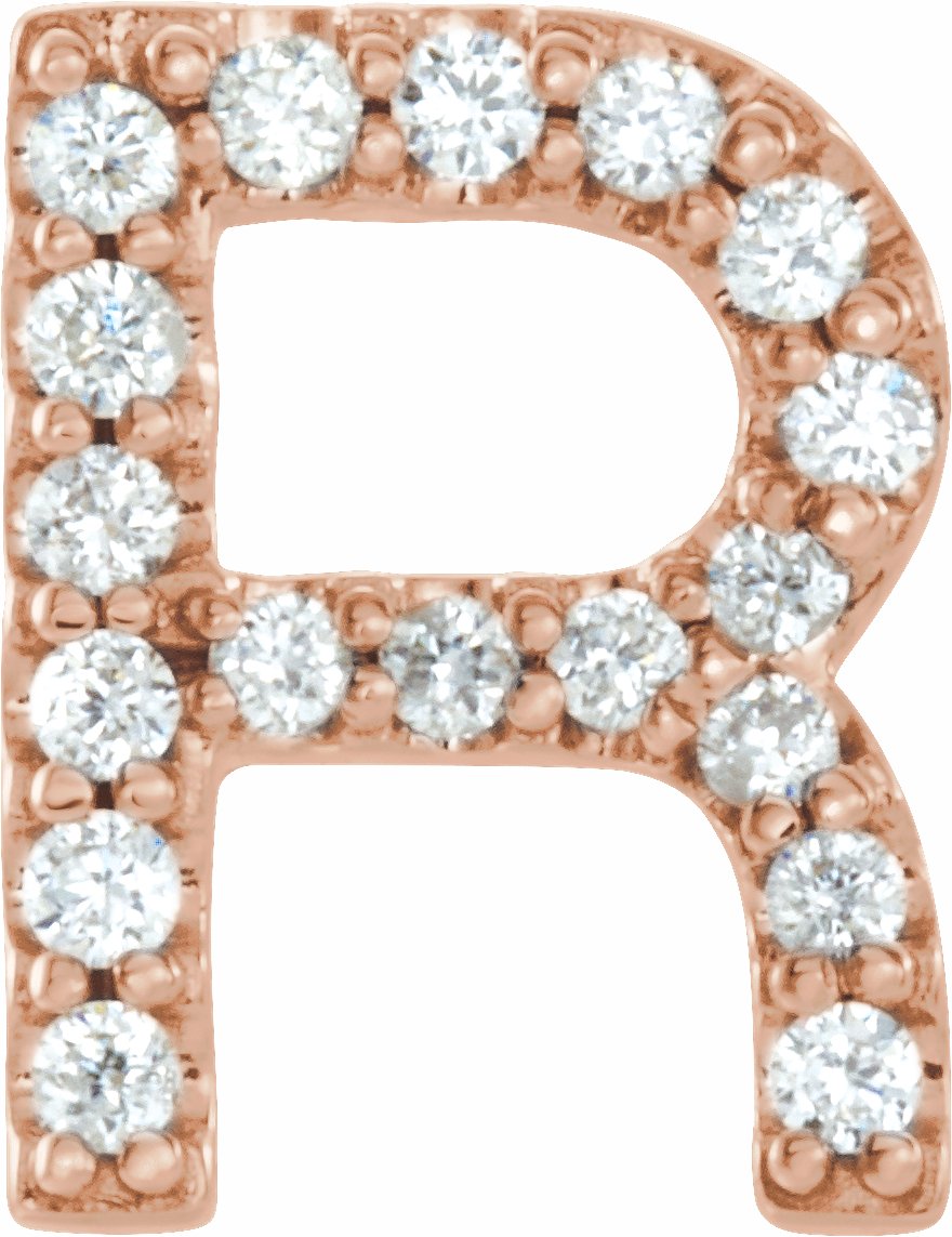 86797 / Set / 14K Rose / R / Each / Polished / .06 Ctw Diamond Initial Earring W/Back