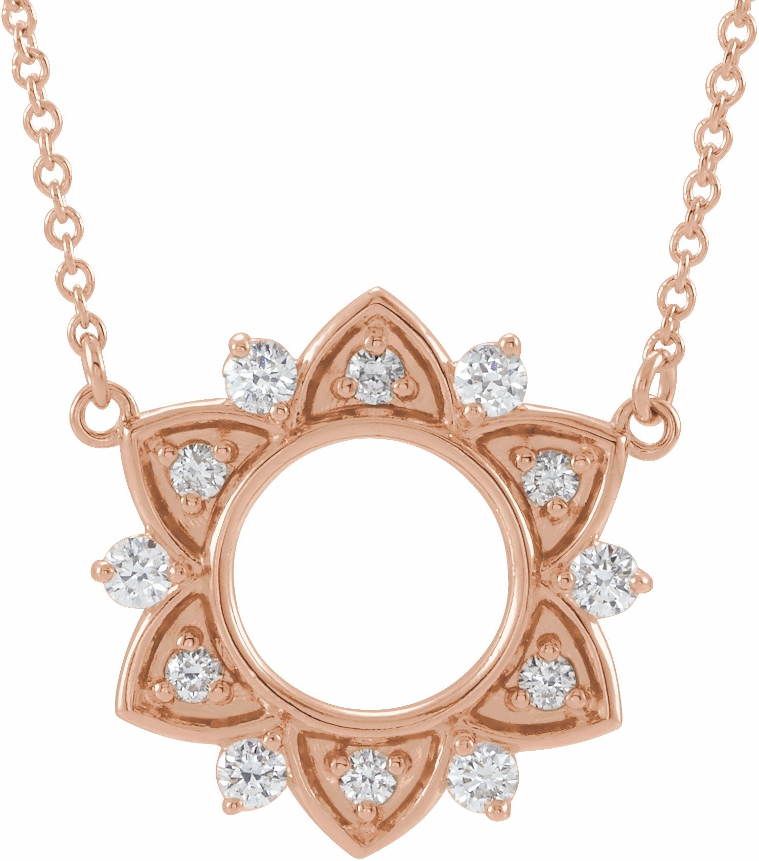 86835 / Necklace / Set / 14K Rose / 17.6 X 16.9 Mm / 18 In / Polished / 1/4 Ctw Diamond Accented Necklace