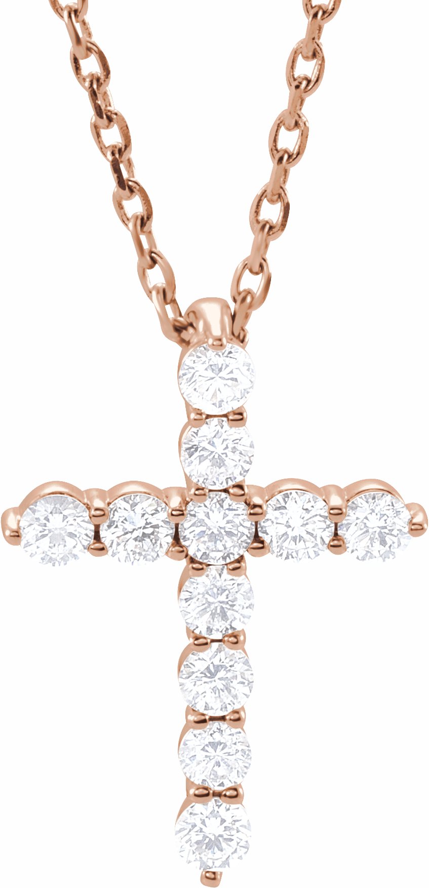 R42359 / Set / Diamond / Round / Necklace / 14K Rose / I1, G-H :: 1/4 Ctw / 14.6 X 10.5 Mm / 16-18 In / Polished / 1/4 Ctw Diamond Cross Necklace