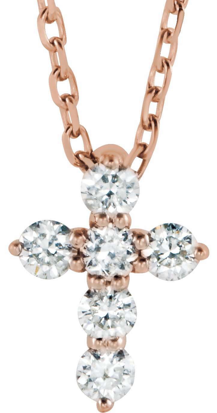 R42359 / Set / Diamond / Round / Necklace / 14K Rose / I1, G-H :: 1/6 Ctw / 8.7 X 6.6 Mm / 16-18 In / Polished / 1/6 Ctw Diamond Cross Necklace