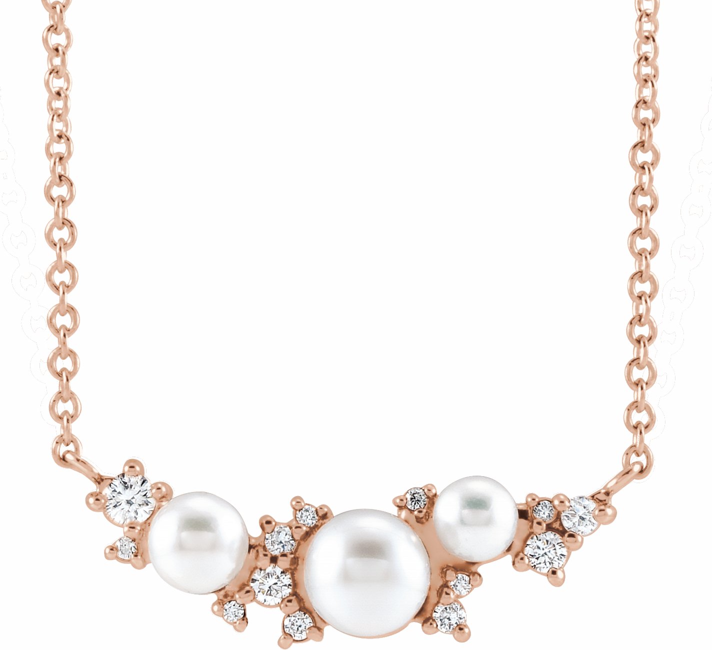 14K Rose Akoya Cultured Pearl & .08 CTW Diamond 16 Necklace - 87273122P