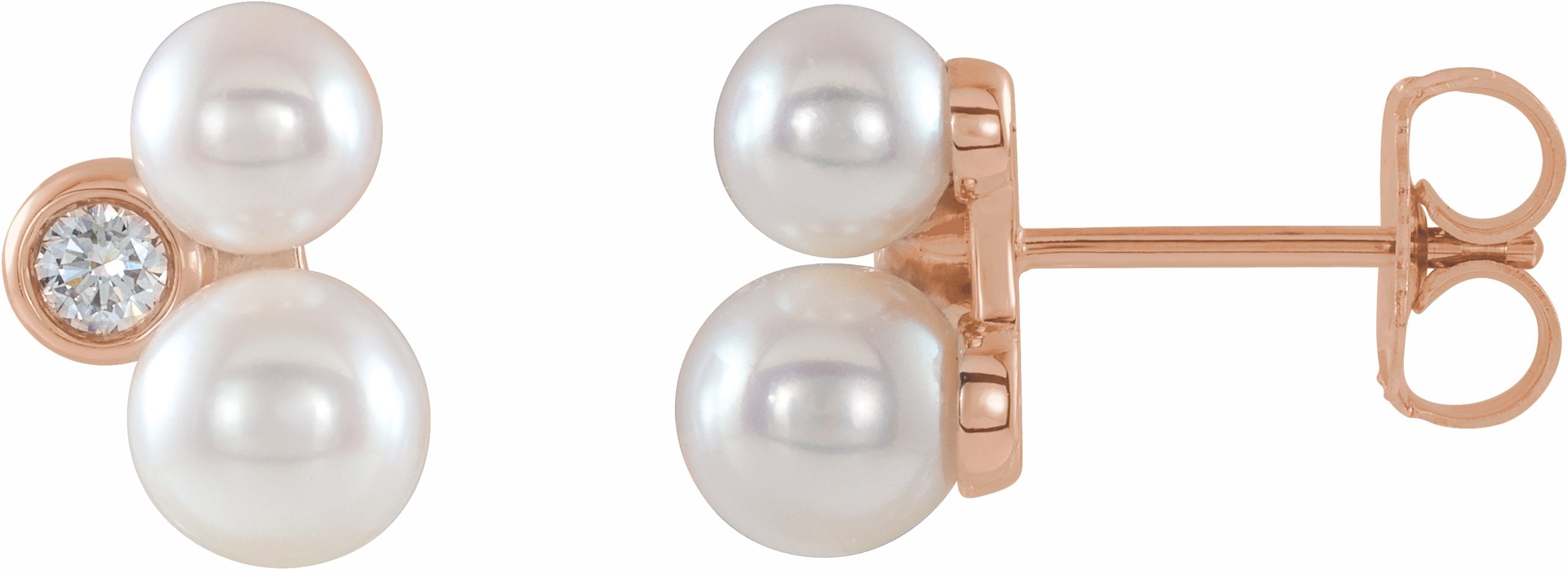 86853 / Set / 14K Rose / Pair / Polished / White Cultured Akoya And 1/8 Ctw Diamond Earrings