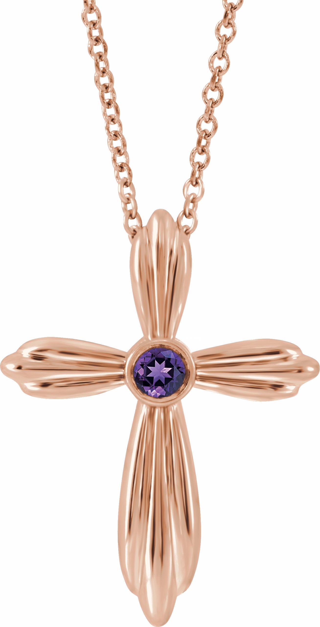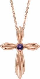 R42369 / Necklace / Set / 14K Rose / Amethyst / Round / 2.5 Mm / Polished / Genuine Amethyst Cross Necklace