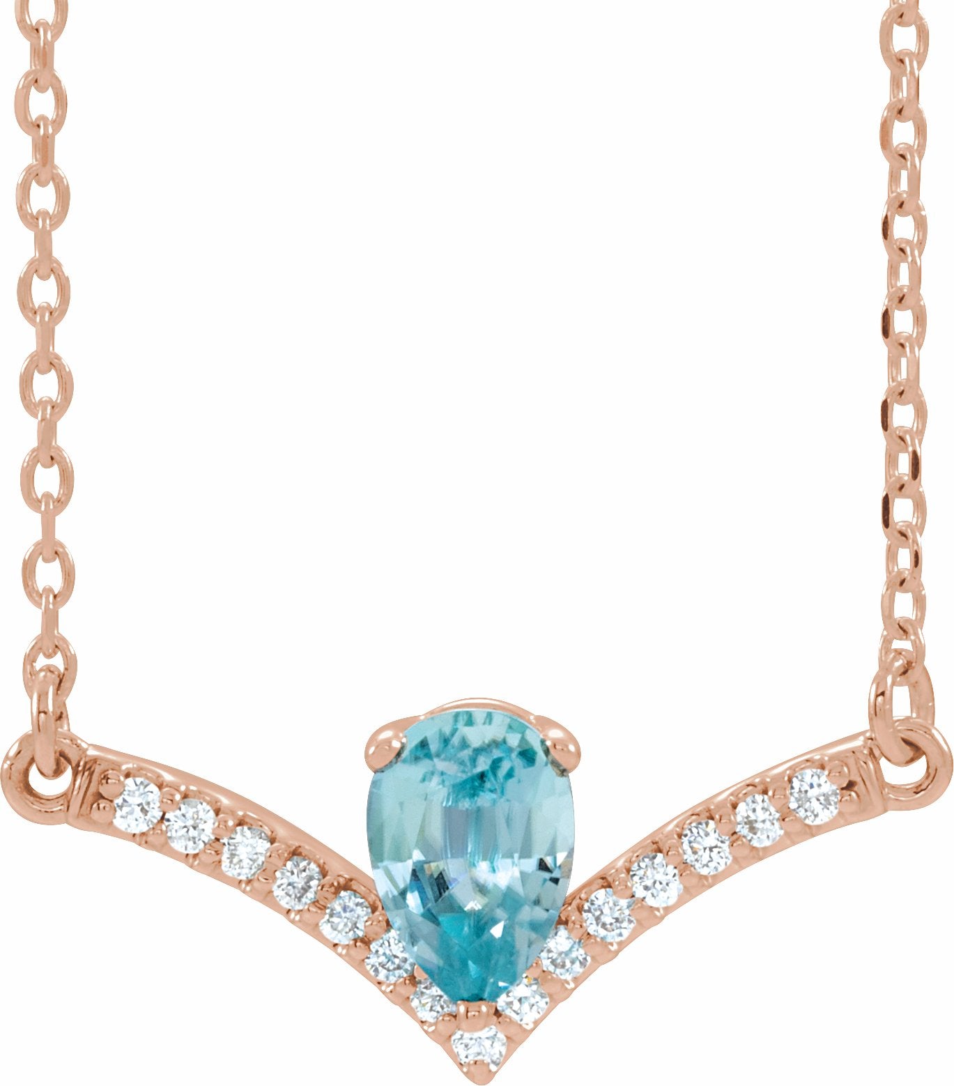 86814 / Necklace / Set / 14K Rose / Blue Zircon / 19.8 X 8.2 Mm / 18 In / Polished / Genuine Blue Zircon And .06 Ctw Diamond Necklace