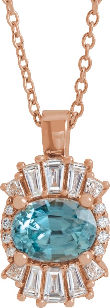 86970 / Necklace / Set / 14K Rose / Blue Zircon / 16.1 X 9.3 Mm / 16-18 In / Polished / Genuine Blue Zircon And 1/3 Ctw Diamond Necklace