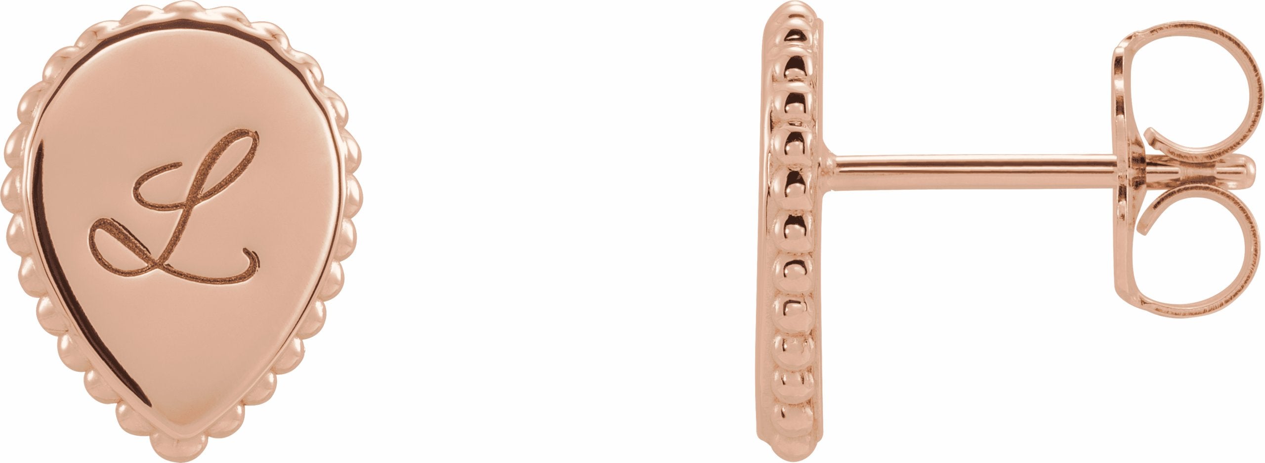 86844 / 14K Rose / Pair / Polished / Pear Engravable Beaded Earring