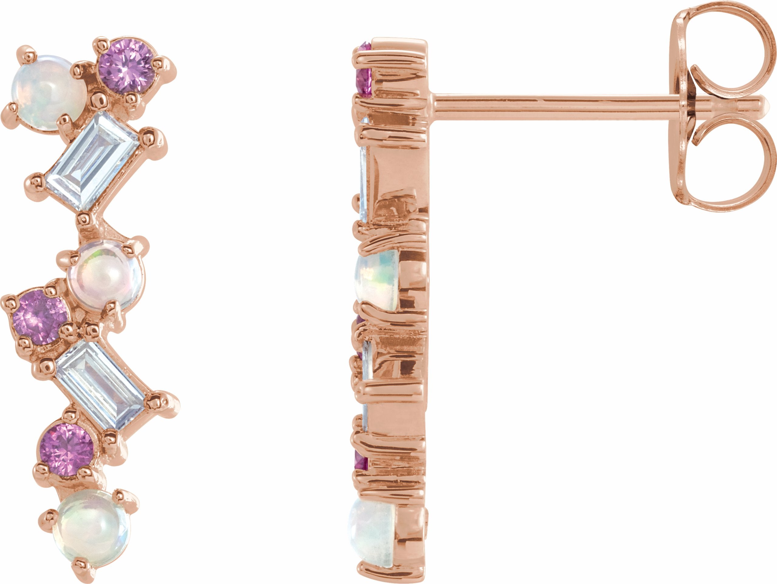 87048 / Set / 14K Rose / Genuine Ethiopian Opals, Pink Sapphires, Diamonds / Friction Backs Included / Pair / Polished / Multi-Gemstone Drop Earrings
