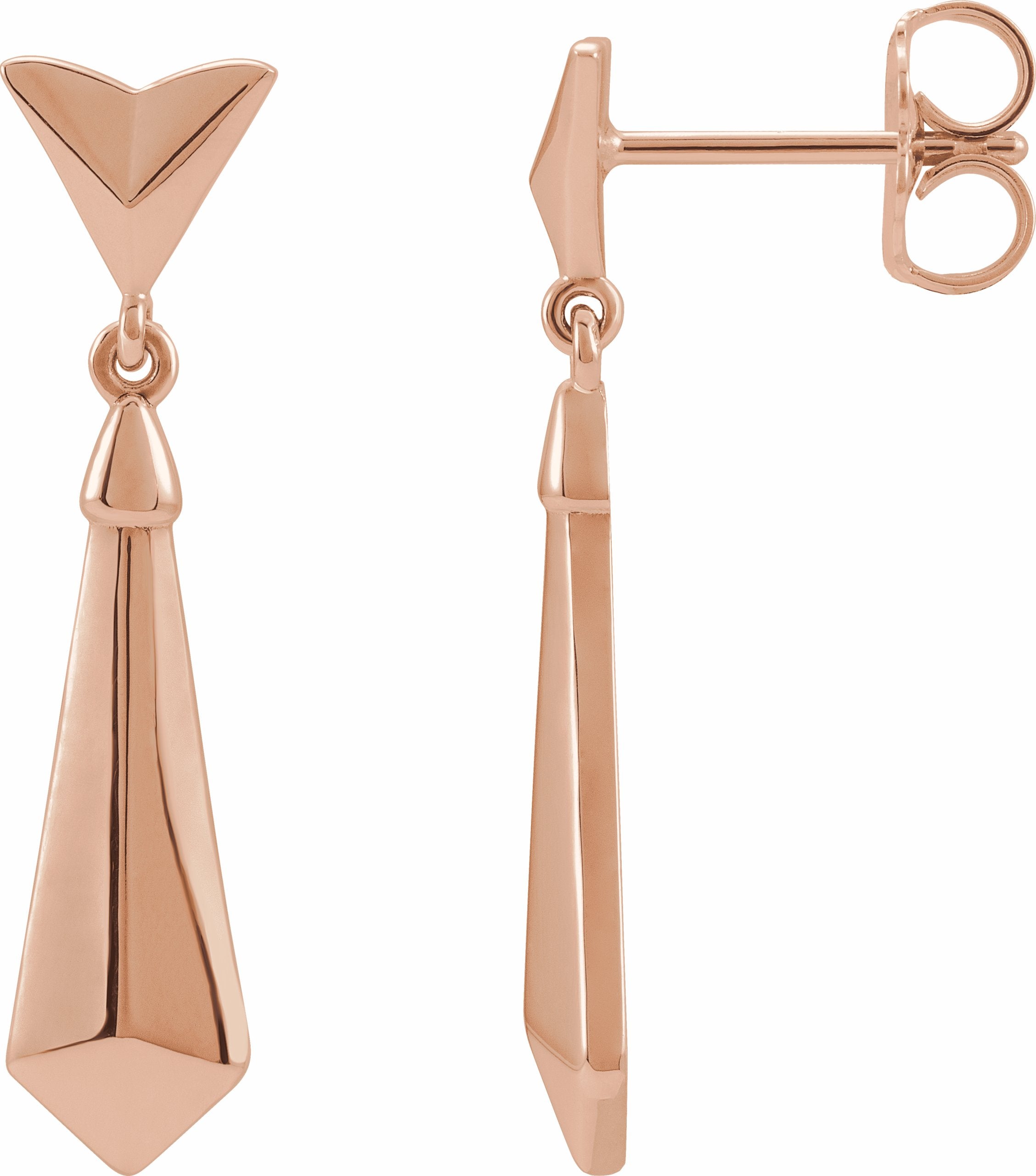 87149 / 14K Rose / Earring / Friction Backs Included / Pair / Polished / Geometric Dangle Earring With Backs