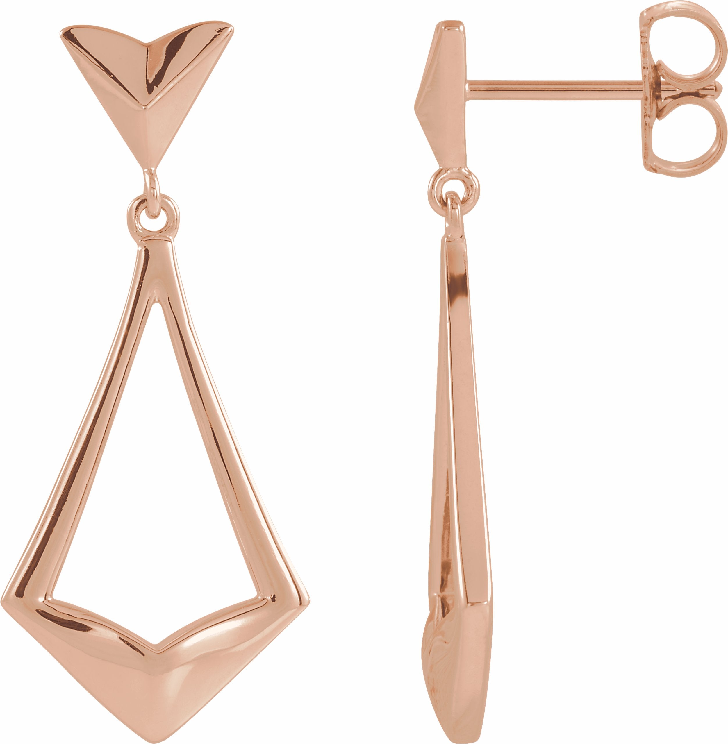 86923 / 14K Rose / Pair / Polished / Geometric Dangle Earrings With Backs