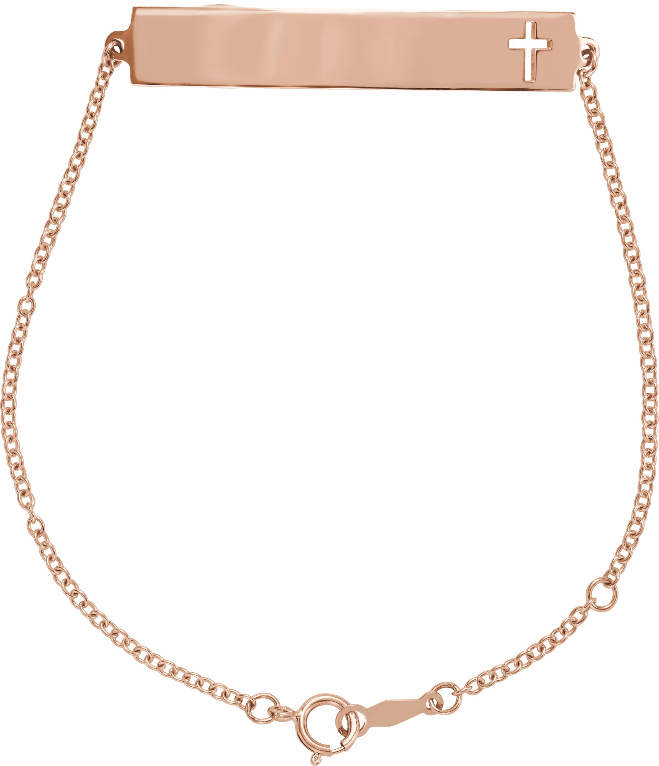 Brc767 / 14K Rose / 6 1/2-7 1/2 In / No Customization / Polished / Pierced Cross Bracelet