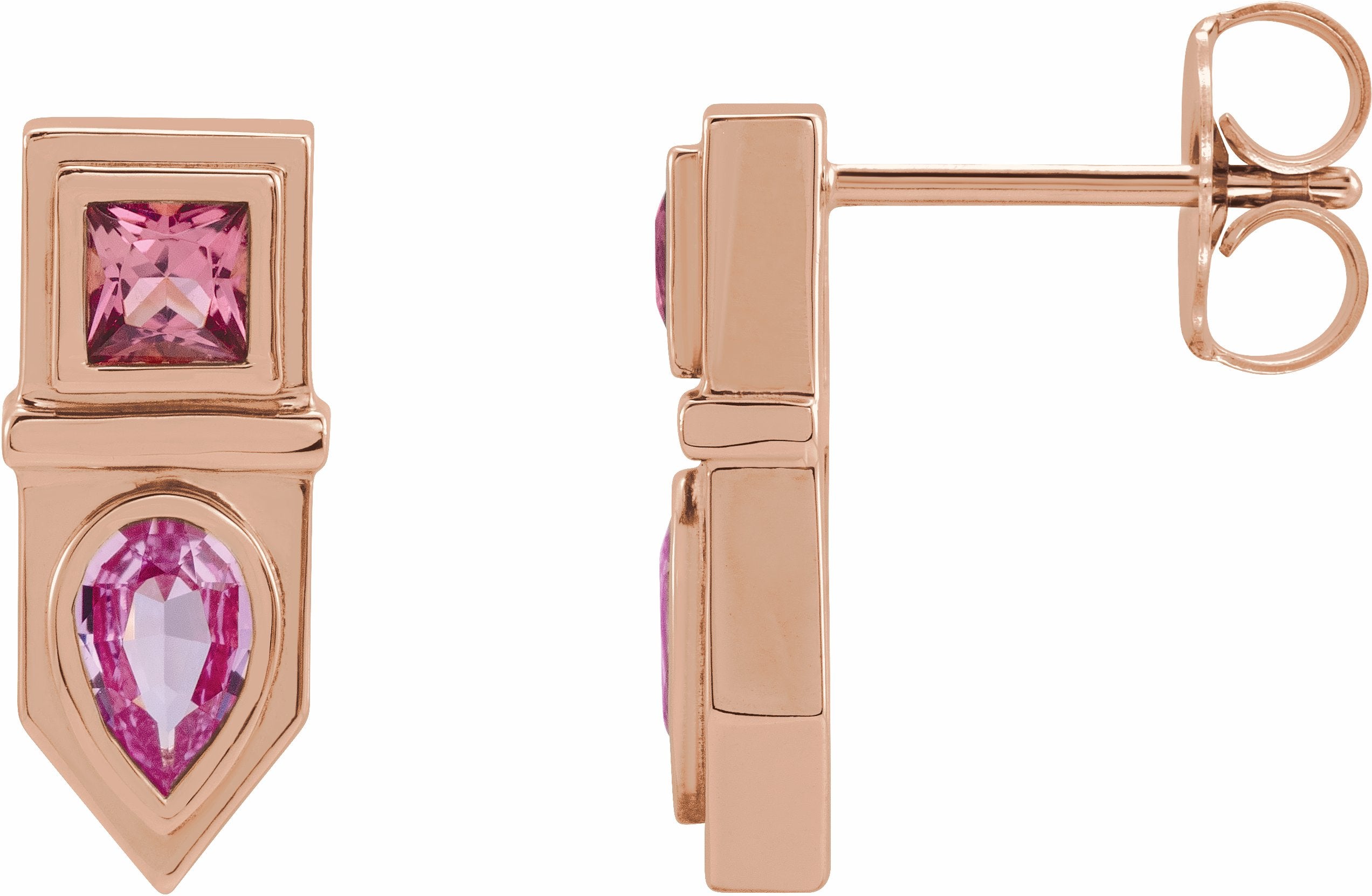 87039 / Set / 14K Rose / Pink Multi-Gemstone / Pair / Polished / Genuine Pink Multi-Gemstone Geometric Bar Drop Earrings