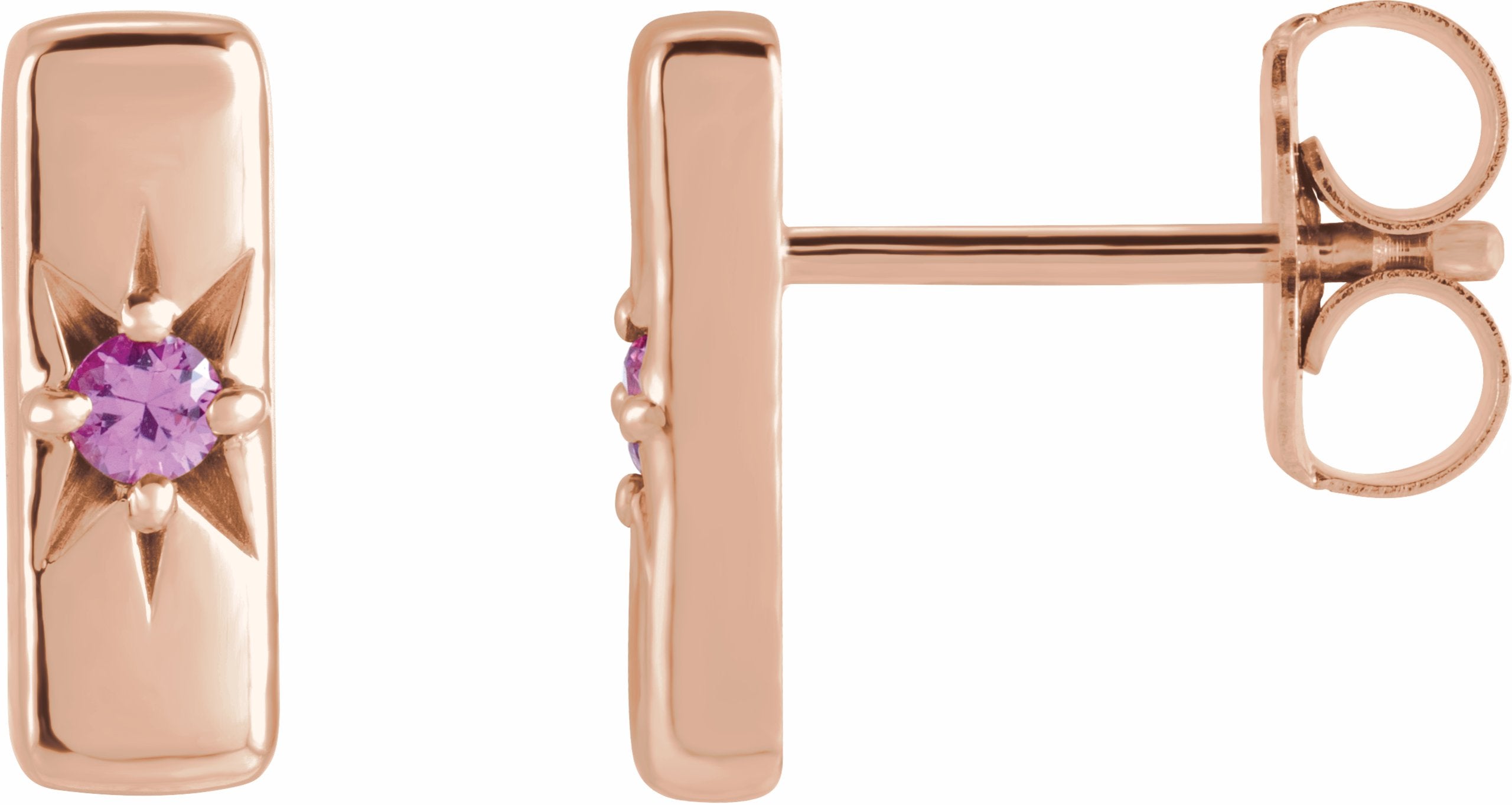 87144 / 14K Rose / 10 Mm / Set / Pink Sapphire / Round / 2 Mm / Pair / Friction Backs Included / Polished / Starburst-Accented Bar Earrings