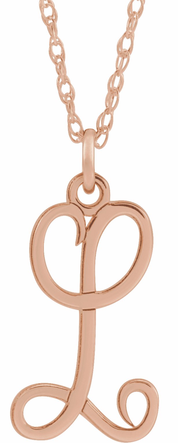87090 / 14K Rose / L / 16-18 In / Polished / Script Initial Necklace