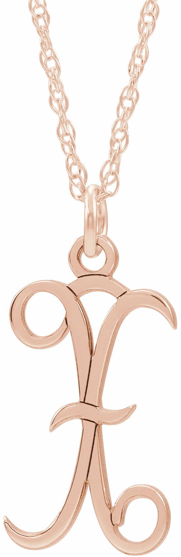87090 / 14K Rose / X / 16-18 In / Polished / Script Initial Necklace