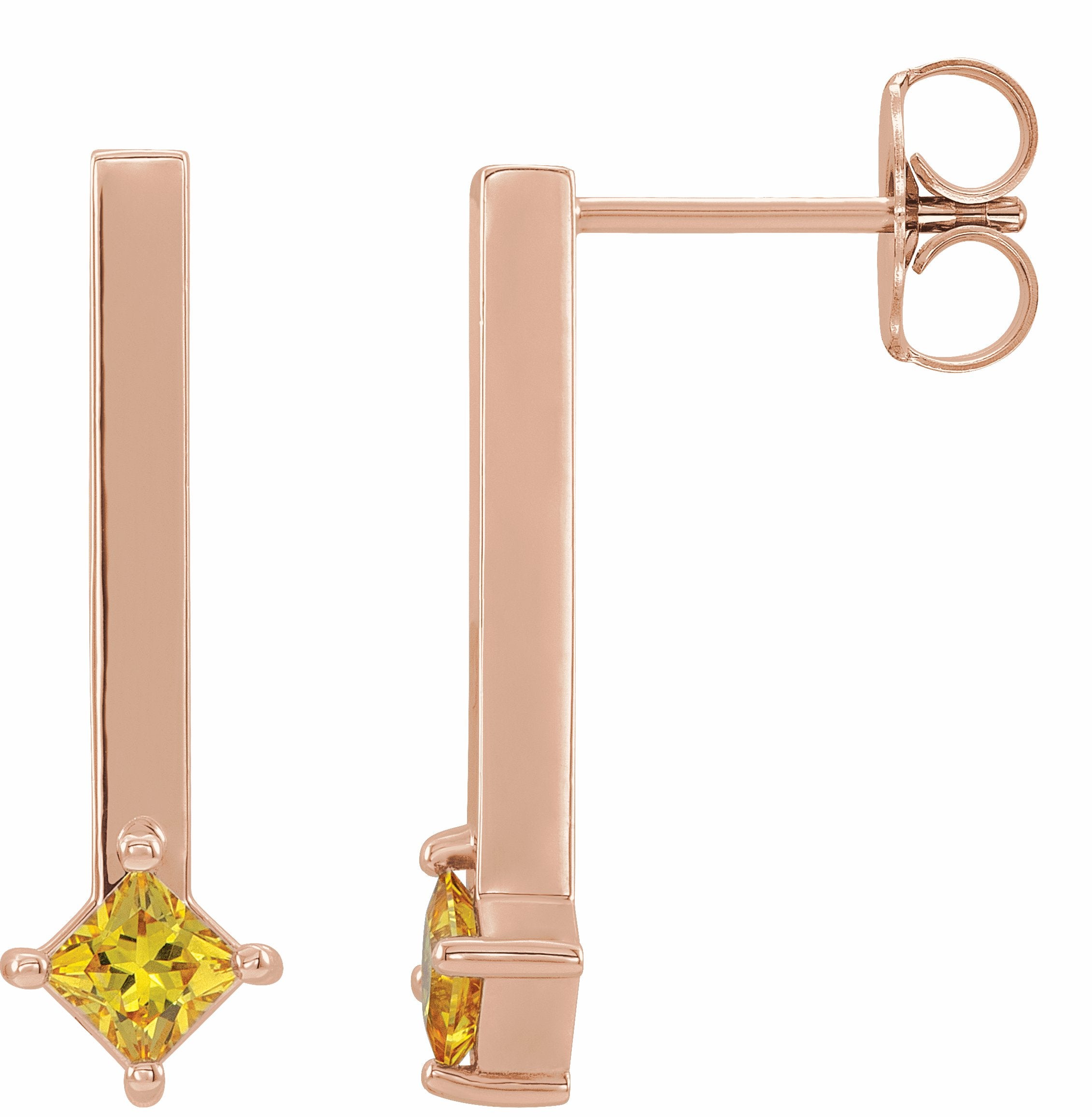 87023 / Set / 14K Rose / Yellow Sapphire / Pair / Polished / Genuine Yellow Sapphire Bar Drop Earrings With Backs